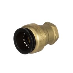 This 3/4 inch CTS X 1/2 inch NPT AquaLock(TM) brass female adapter works with copper, CPVC, PEX, and CTS rated pipe. It is easy to install, no tools or tube inserts are required. The fitting can be used for hot and cold water applications. The unique O-ring guide feature provides a zero-leak connection. Unlike barb fittings, this fitting joins the tubing on the outside, increasing the flow capacity. After a connection has been made even under maximum pressure, the tubing is able to swivel, making the fitting ideal for vibrating and dynamic applications.