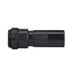 This 22 MM x 15 MM AquaLock(TM) metric reducing stem works with copper, CPVC, PEX, and CTS rated pipe. It is easy to install, no tools or tube inserts are required. The fitting can be used for hot and cold water applications. The unique O-ring guide feature provides a zero-leak connection. Unlike barb fittings, this fitting joins the tubing on the outside, increasing the flow capacity. After a connection has been made even under maximum pressure, the tubing is able to swivel, making the fitting ideal for vibrating and dynamic applications. Available in bulk quantities as contractor pack.