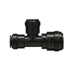 This 22 MM x 15 MM x 15 MM AquaLock(TM) metric reducing tee works with copper, CPVC, PEX, and CTS rated pipe. It is easy to install, no tools or tube inserts are required. The fitting can be used for hot and cold water applications. The unique O-ring guide feature provides a zero-leak connection. Unlike barb fittings, this fitting joins the tubing on the outside, increasing the flow capacity. After a connection has been made even under maximum pressure, the tubing is able to swivel, making the fitting ideal for vibrating and dynamic applications. Available in bulk quantities as contractor pack.