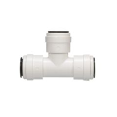 This 3/4 inch CTS AquaLock(TM) plastic tee works with copper, CPVC, PEX, and CTS rated pipe. It is easy to install, no tools or tube inserts are required. The fitting can be used for hot and cold water applications. The unique O-ring guide feature provides a zero-leak connection. Unlike barb fittings, this fitting joins the tubing on the outside, increasing the flow capacity. After a connection has been made even under maximum pressure, the tubing is able to swivel, making the fitting ideal for vibrating and dynamic applications.