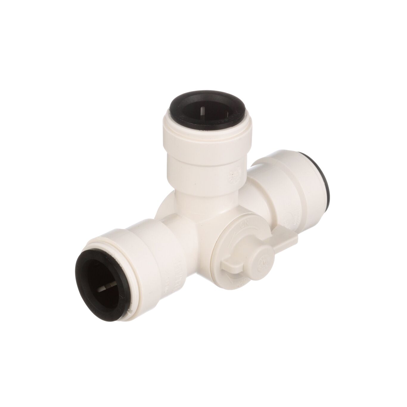 This 1/2 inch CTS AquaLock(TM) plastic 3-way selector valve works with copper, CPVC, PEX, and CTS rated pipe. It is easy to install, no tools or tube inserts are required. The fitting can be used for hot and cold water applications. The unique O-ring guide feature provides a zero-leak connection. Unlike barb fittings, this fitting joins the tubing on the outside, increasing the flow capacity. After a connection has been made even under maximum pressure, the tubing is able to swivel, making the fitting ideal for vibrating and dynamic applications. Available in bulk quantities as contractor pack.