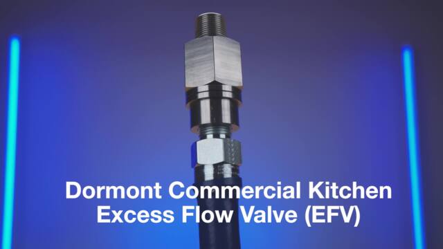 Dormont Commercial Excess Flow Valve (EFV) is engineered to enhance safety in foodservice commercial kitchens through its innovative design. In the event of a gas line rupture or disconnection, the EFV detects the abnormal flow and automatically activates an internal valve to restrict gas flow, helping prevent the dangerous accumulation of gas within the space. Designed for use with Dormont 1675 Blue Hose gas appliance connectors only.
