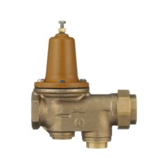 This 2 inch lead free brass water pressure reducing valve for high pressure ranges is designed to reduce incoming water pressure to protect plumbing systems and reduce water consumption for commercial, industrial and residential applications. The easy maintenance assembly consists of a replaceable seat module, NPT threaded female union inlet by NPT female outlet and a bypass feature to control thermal expansion pressure. The temperature range is 33 to 180 degrees F (0.5 to 82 degrees C). The high pressure range is 75 to 125 psi (518 to 863 kPa) with the standard setting at 90 psi (621 kPa).